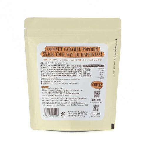 【原材料】とうもろこし(米国産、遺伝子組み換えでない)、有機エキストラバージンココナッツ オイル、有機ココナッツシュガー、塩