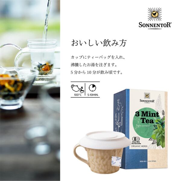 【原材料】有機ペパーミント、有機チョコレートミント、有機スペアミント